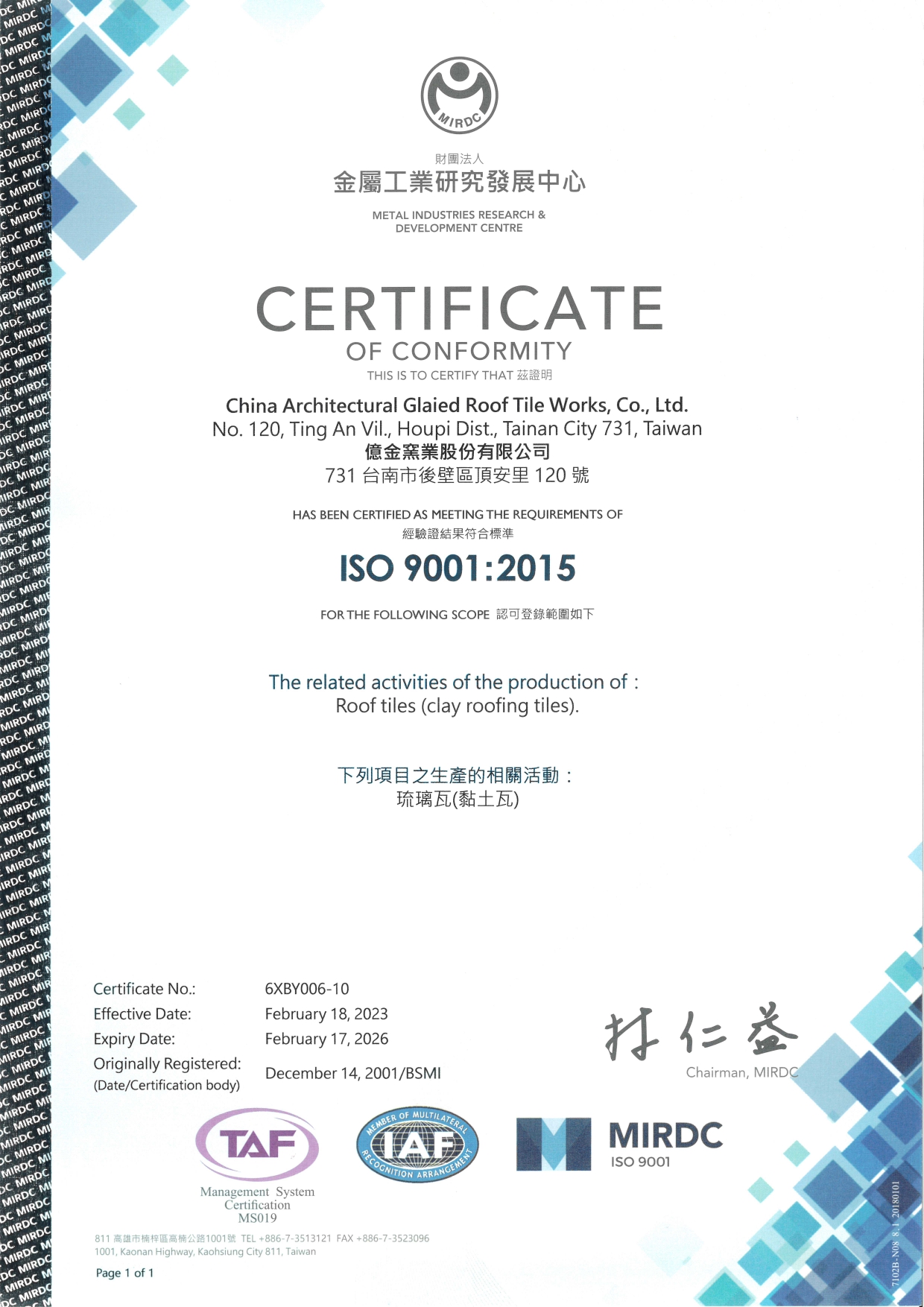 佛光牌新型專利琉璃瓦 / 億金窯業股份有限公司